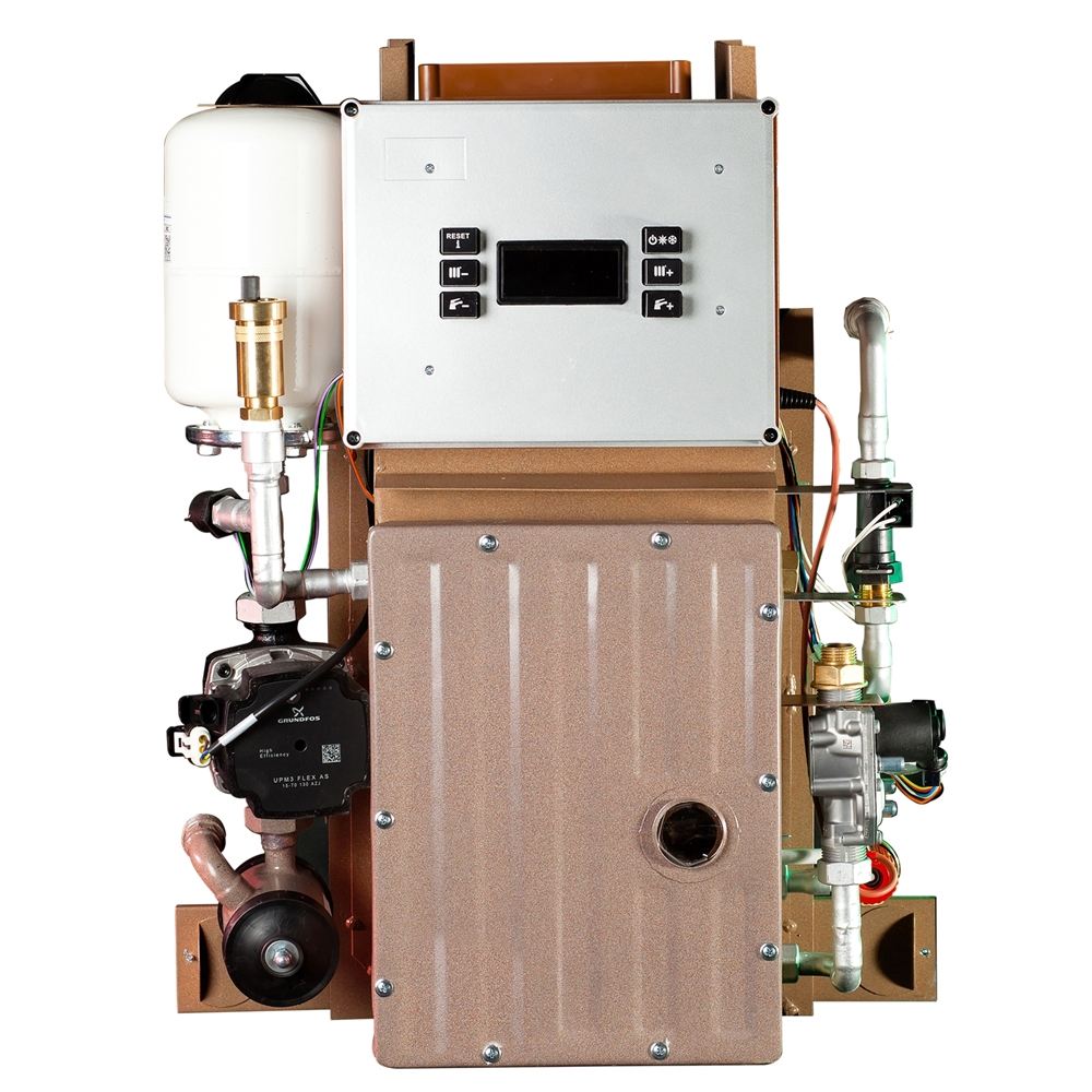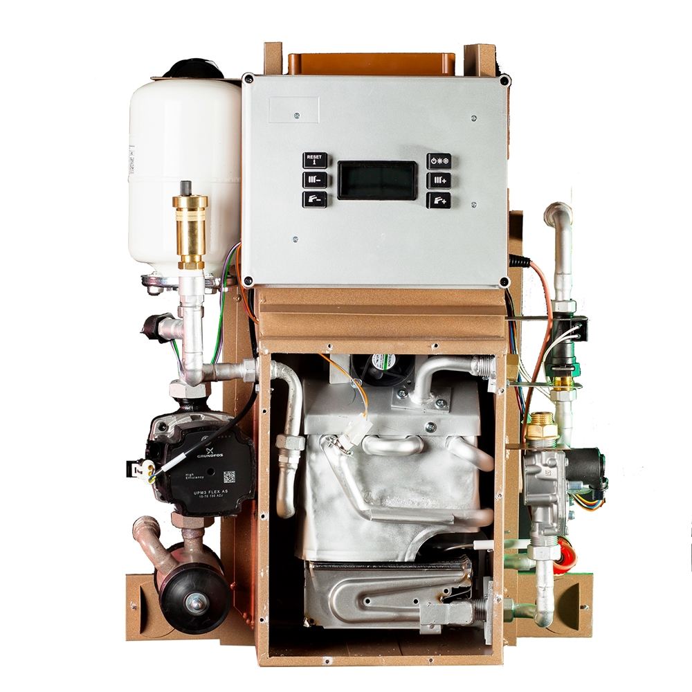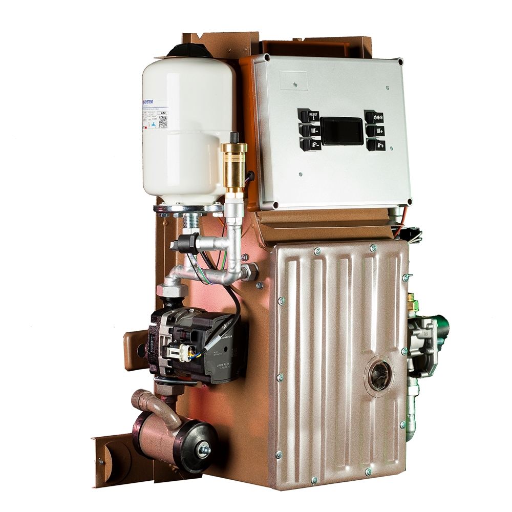 - Beépítve tartalmazza az összes szerelvényt: szelep, elektronikus szabályozás kijelzővel, szivattyú, biztonsági berendezések, 2 literes Aquasystem tágulási tartály
